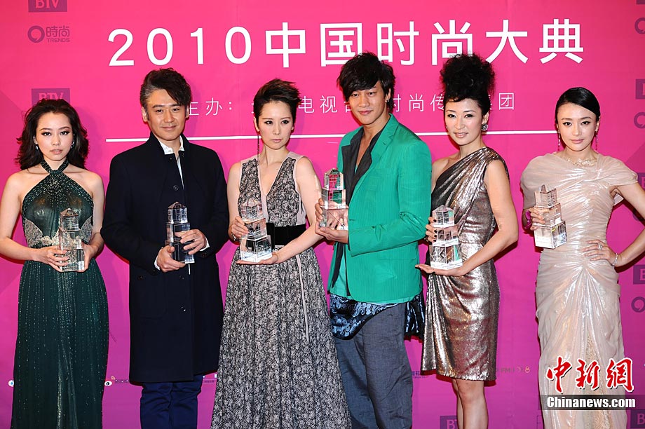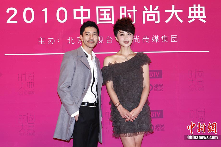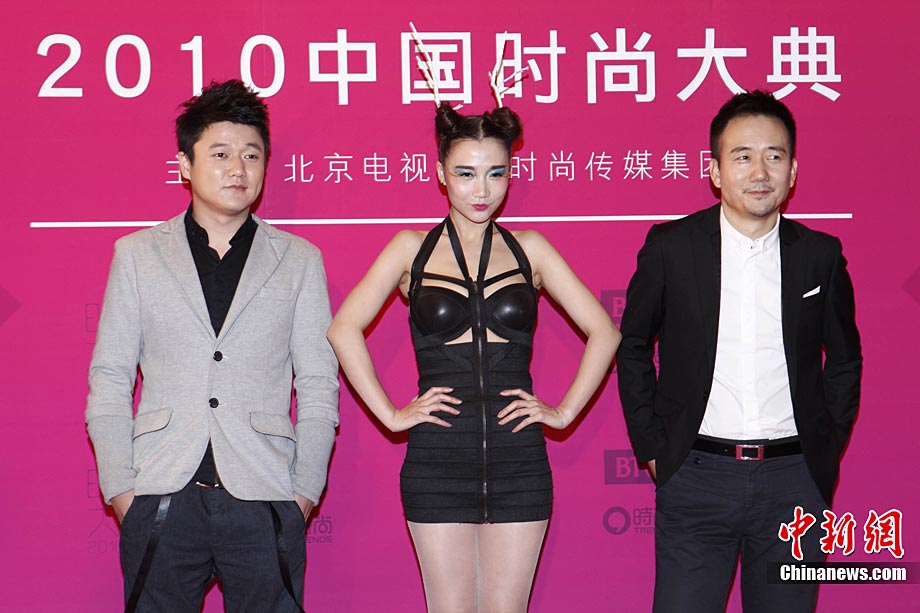 12月22日晚,由北京電視臺和時尚傳媒集團聯(lián)合主辦的2010中國時尚大典在北京精彩上演。張藝謀、黃曉明、何潤東、立威廉、翁虹、秦嵐、張靚穎、愛戴、阿朵等眾星云集讓現(xiàn)場星光熠熠。2010時尚大典以“時尚改變生活”為主題,精心設計并頒布了覆蓋時尚生活和時尚工業(yè)全局的18個大獎。藝術家葉錦添領軍16位中國新銳時裝設計師打造明星與名師的“跨界”時尚秀場。大典精彩鉅獻了一場集震撼視覺表達和時尚魅力呈現(xiàn)的饕餮盛宴。圖為阿朵和“筷子兄弟”組合,阿朵的黑色緊身衣和鹿角發(fā)型十分搶鏡。中新社記者 李學仕 攝