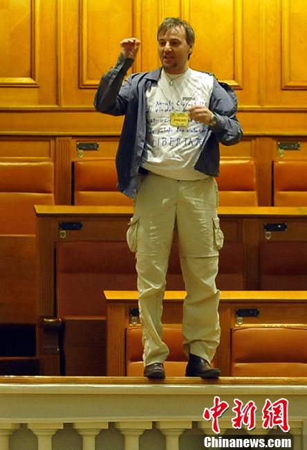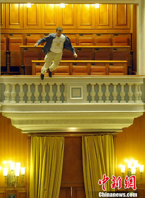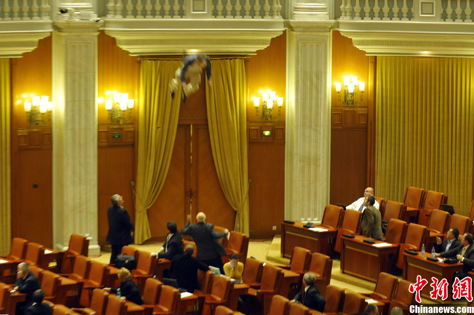 當(dāng)?shù)貢r(shí)間12月23日,羅馬尼亞一名男子為抗議殘障兒子的社會(huì)福利遭刪減,從國會(huì)旁觀席的看臺(tái)跳下,震驚了總理及在場議員。不過經(jīng)緊急送醫(yī)后,這名男子脫離了生命危險(xiǎn)。據(jù)悉,這名跳樓男子是電視臺(tái)的工程人員。
