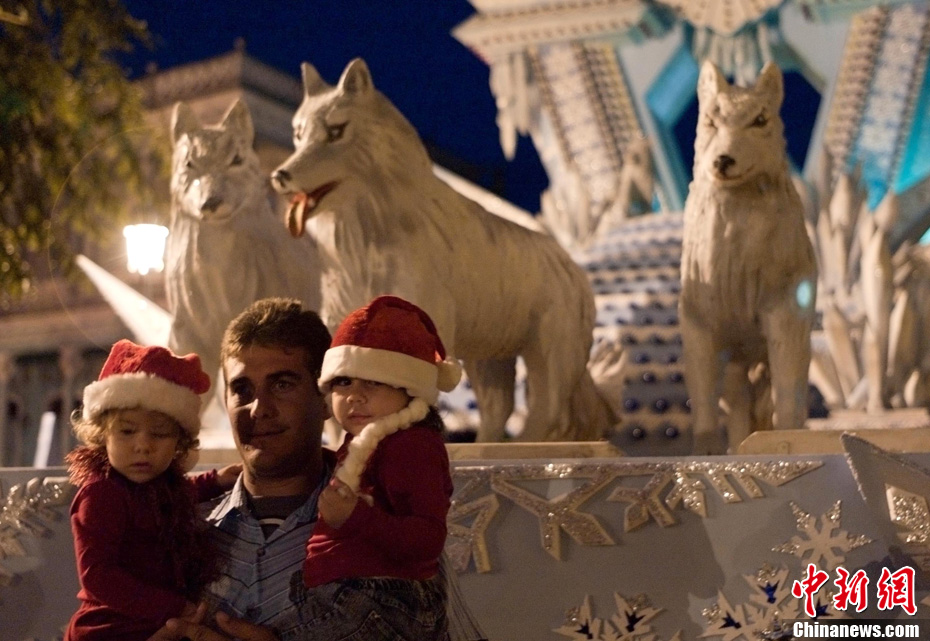 當(dāng)?shù)貢r間12月24日,伊拉克庫爾德人聚集地圣誕老人為孩子們送去歡樂。
