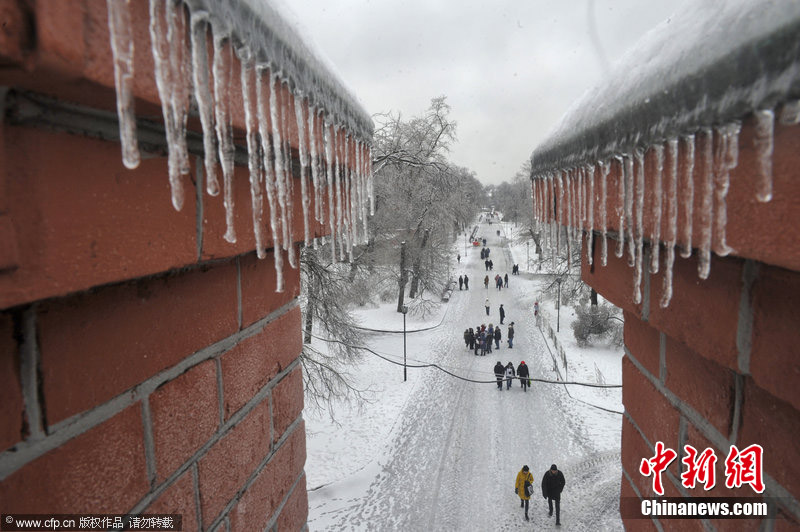 2010年12月25日至26日,持續(xù)近1天的凍雨將俄羅斯首都莫斯科變成了一個(gè)“大溜冰場(chǎng)”,給這座大都市帶來(lái)了諸多不便。這一罕見氣候現(xiàn)象從25日下午開始影響莫斯科市。當(dāng)時(shí),天空中開始下起雨,雨滴落到地面后受低溫影響,迅速形成了一層“冰殼”,導(dǎo)致很多道路完全被薄冰覆蓋,非常濕滑。圖片來(lái)源:CFP視覺(jué)中國(guó)