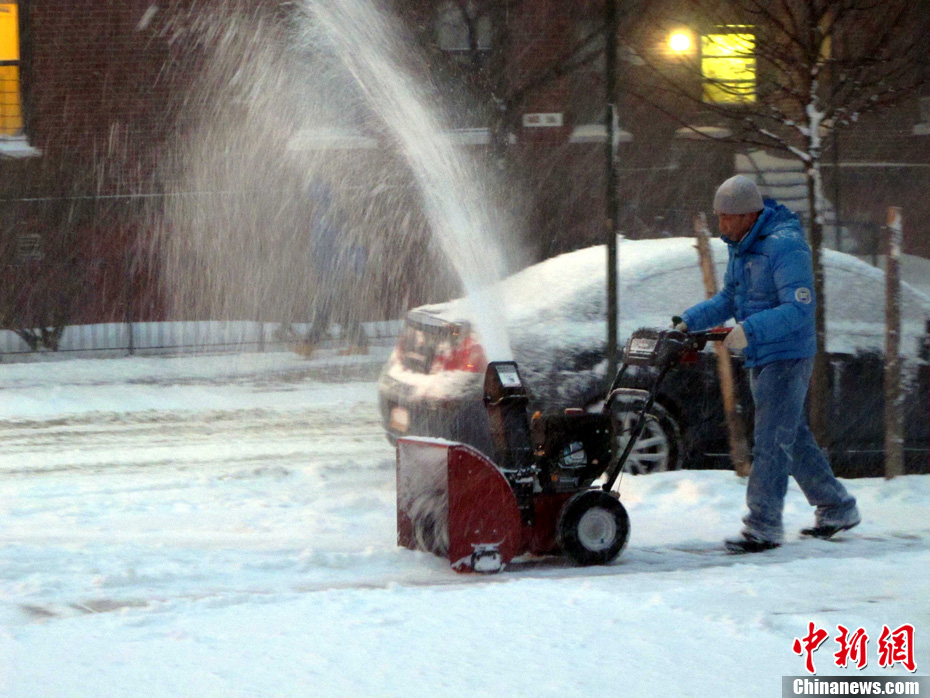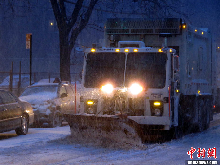 一場暴風(fēng)雪26日撲向美國東北部的新澤西州、紐約市等地,同時伴有時速達到四五十哩的勁風(fēng),預(yù)計26日及27日為這些地區(qū)帶來十英寸左右的積雪。公路行車危險大增,卷起的漫天白雪可能造成航班嚴(yán)重誤點,導(dǎo)致華盛頓、紐約和波士頓機場近日取消航班。圖為紐約法拉盛街頭掃雪車正在清理公路積雪。中新社記者 孫宇挺 攝