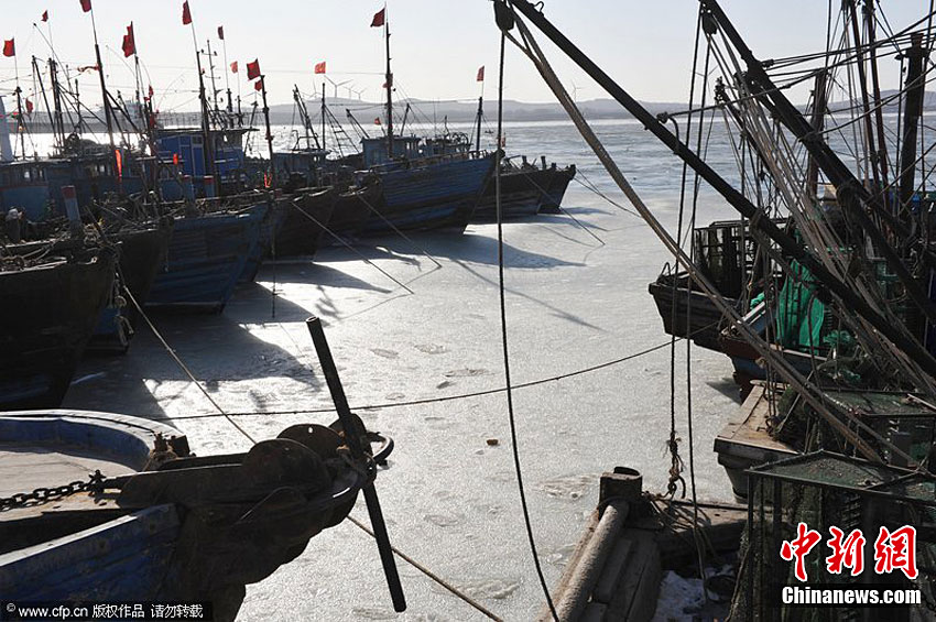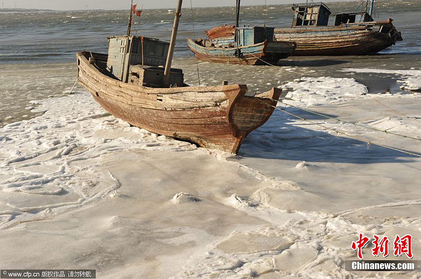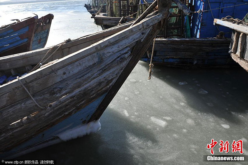 從12月25日以來,一場冷空氣席卷山東半島,沿海最低氣溫達-11℃,渤海萊州灣剛剛?cè)诨暮1,再次凝結(jié),有些地方形成了寬約三海里的海冰帶,給當(dāng)?shù)厝嗣裆a(chǎn)生活帶來很大影響。方義 攝 圖片來源:CFP視覺中國
