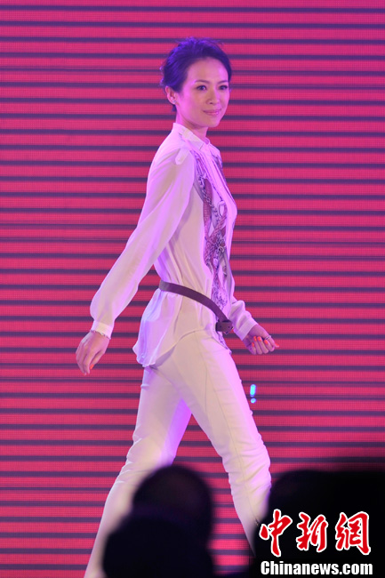 12月28日,銀都機構(gòu)六十周年慶典盛宴在北京舉行。華語功夫巨制《一代宗師》劇組首度全陣容亮相,香港導(dǎo)演王家衛(wèi)攜梁朝偉、章子怡、趙本山、張震、宋慧喬、小沈陽、王慶祥等明星壓軸出場。圖為章子怡登臺亮相。中新網(wǎng)記者 金碩 攝