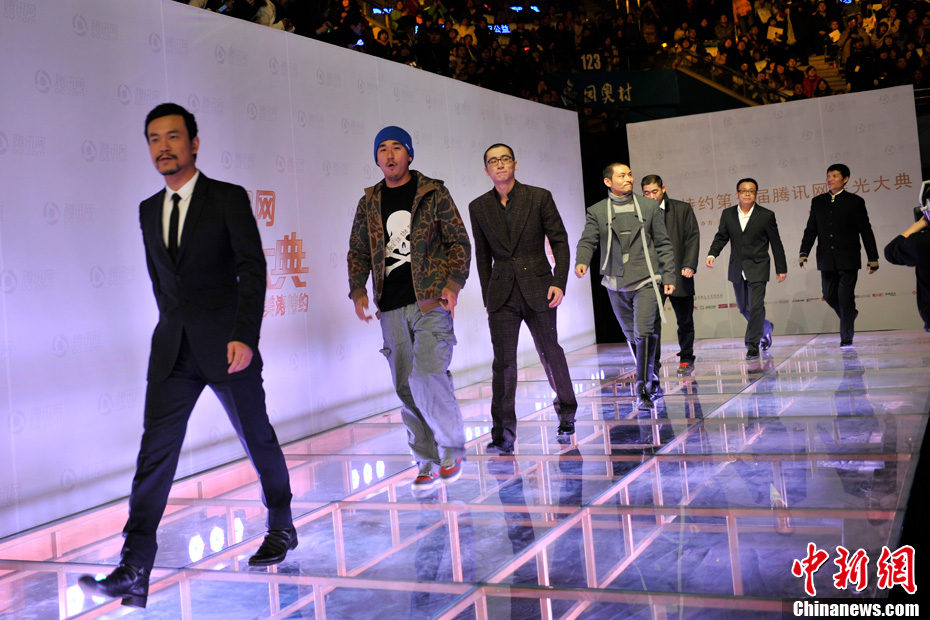12月29日晚,2010星光大典在北京舉行,眾多明星紅毯亮相。圖為《讓子彈飛》劇組成員廖凡、危笑、張默、邵兵、杜奕衡等亮相紅毯。中新社記者 金碩 攝