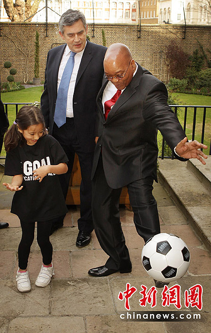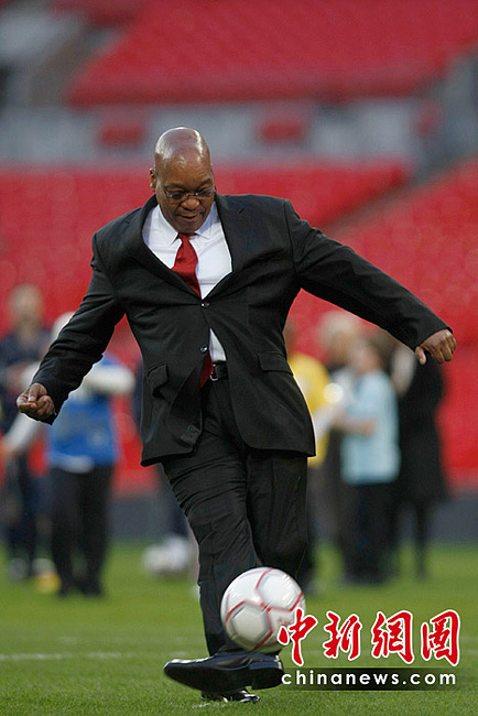 作為一項(xiàng)全球運(yùn)動,足球不單是運(yùn)動員的最愛,同時也受到多國政要的熱愛。傳統(tǒng)列強(qiáng)英法德西的政府首腦曾先后在不同場合大秀自己的球技,而作為2010年世界杯東道主南非的總統(tǒng)祖瑪也不例外。