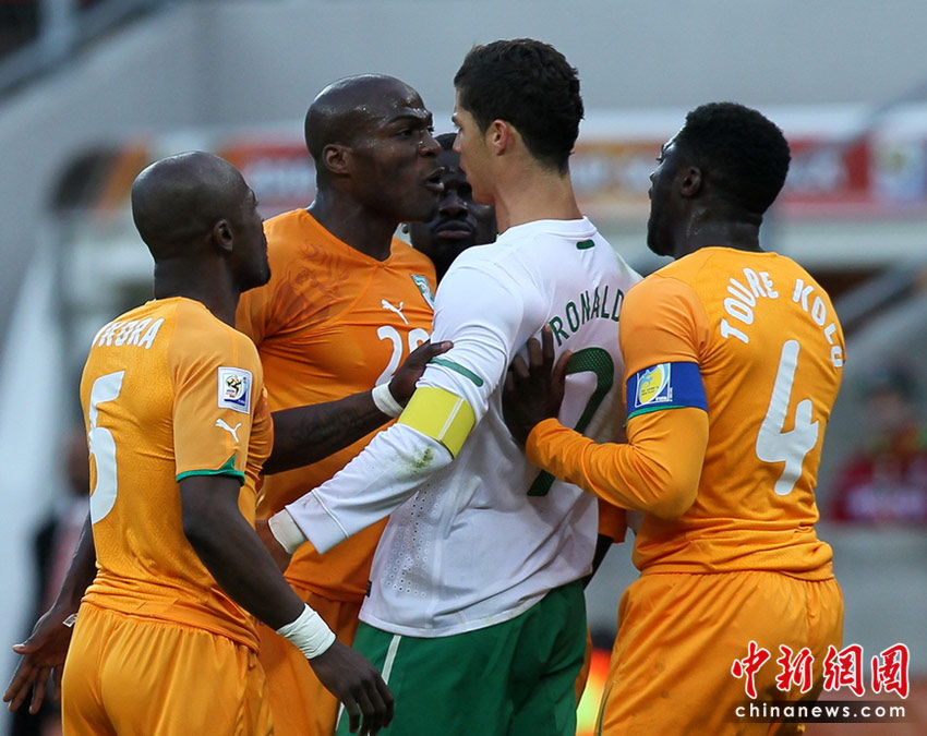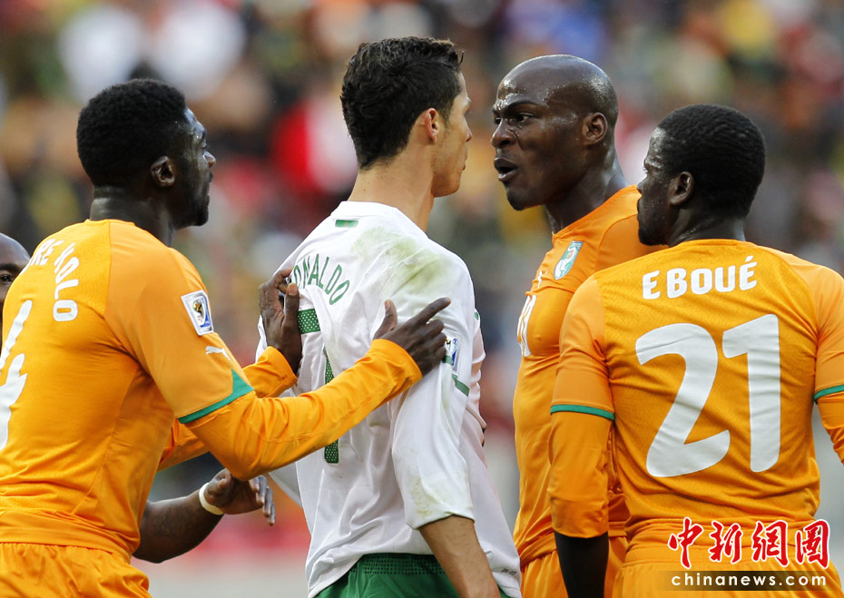 北京時間6月15日晚22點,第19屆世界杯小組賽G組打響首輪爭奪?铺氐贤哧犜谝聋惿赘鄣募{爾遜-曼德拉灣球場迎戰(zhàn)歐洲勁旅葡萄牙隊。C·羅上半場擊中門柱成為本場比賽唯一亮點,科特迪瓦“魔獸”德羅巴未首發(fā)、。直到比賽進行到65分鐘,德羅巴才被替換上場。最終經(jīng)過90分鐘悶戰(zhàn),兩隊0-0握手言和。