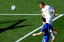 北京時間6月16日凌晨2:30進行的一場世界杯小組賽G組的較量中,巴西隊迎來了朝鮮隊。最終經(jīng)過90分鐘激戰(zhàn),巴西隊2-1擊敗朝鮮,贏得南非世界杯開門紅。中新社記者 廖攀 攝