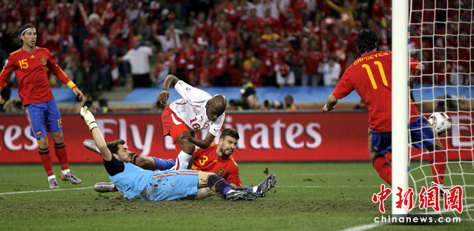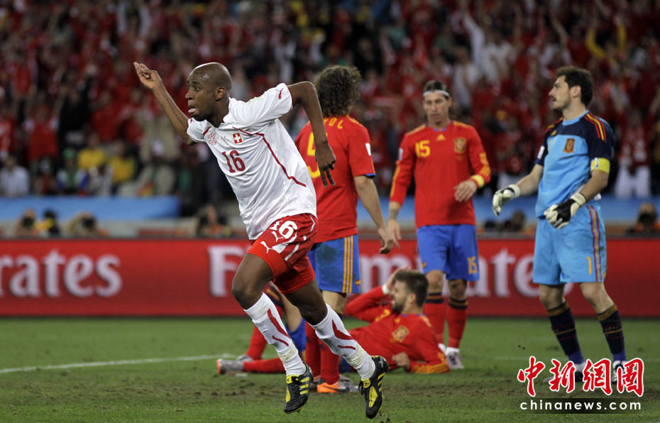 北京時(shí)間6月16日晚22點(diǎn),南非世界杯H組比賽拉開戰(zhàn)幕。奪標(biāo)大熱門西班牙隊(duì)正式亮相賽場(chǎng),在德班球場(chǎng)迎戰(zhàn)“軍刀”瑞士。瑞士隊(duì)?wèi){借下半場(chǎng)比賽開始后不久費(fèi)爾南德斯的反擊得分,以1-0擊敗西班牙,爆出本屆世界杯第一個(gè)大冷門。