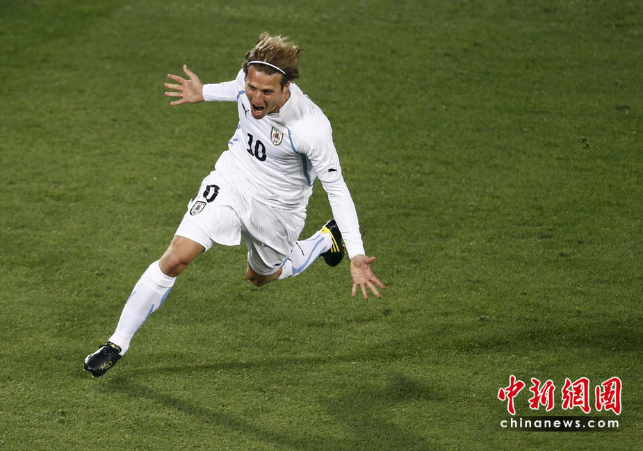 6月17日,世界杯A組第二輪南非迎戰(zhàn)烏拉圭。最終憑借弗蘭的梅開二度和佩雷拉終場(chǎng)補(bǔ)時(shí)的進(jìn)球,烏拉圭隊(duì)以3-0擊敗南非,出線形勢(shì)一片大好。