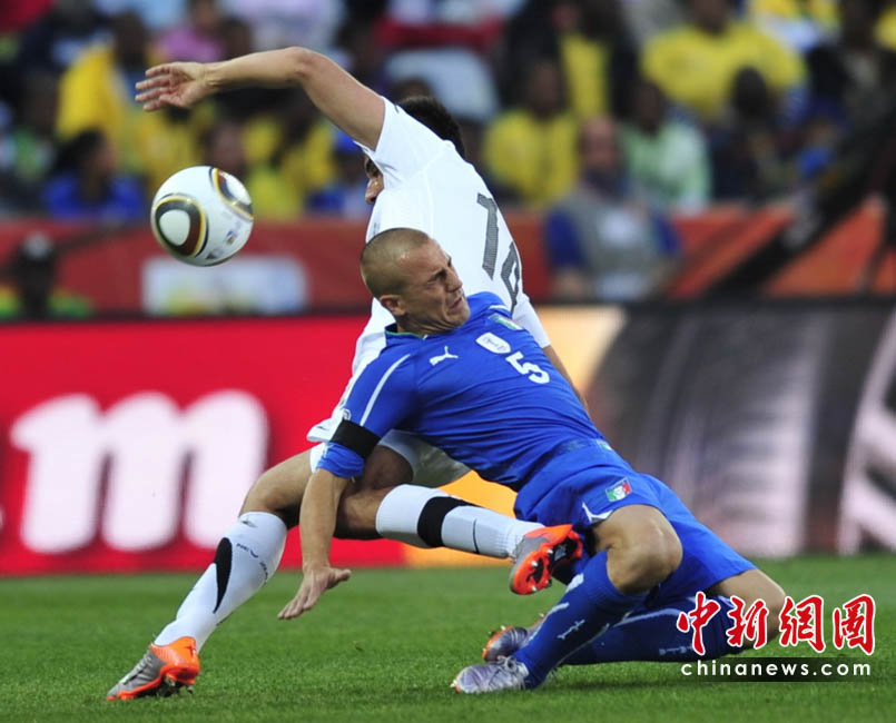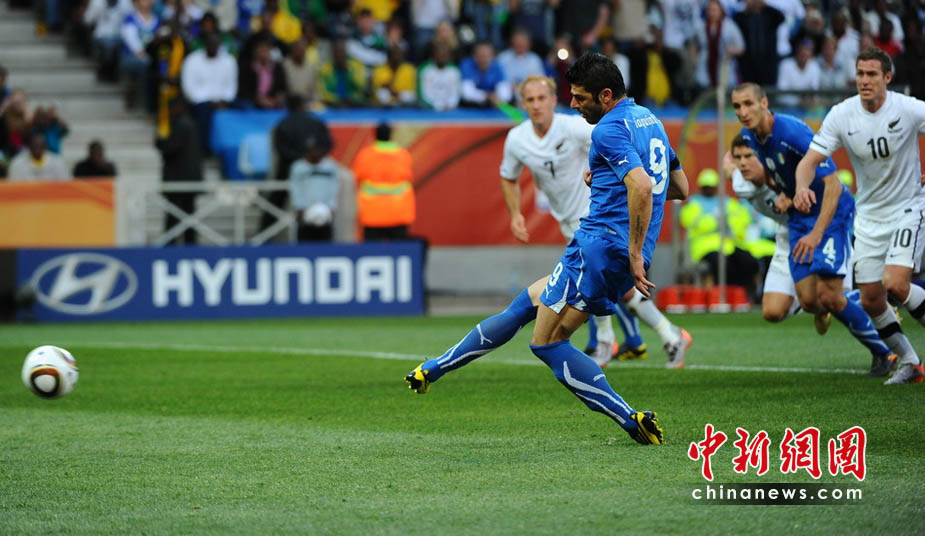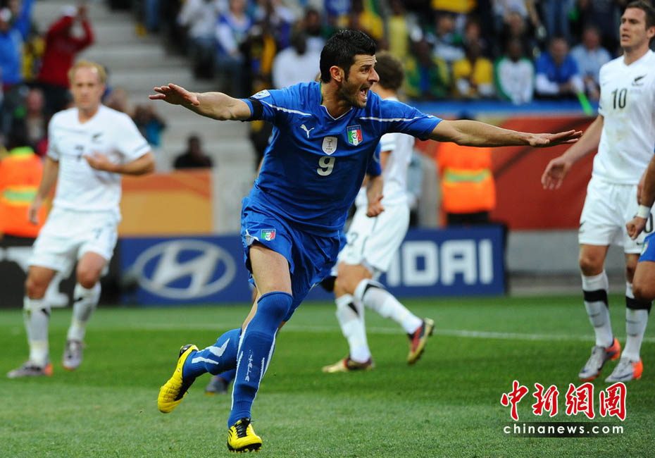 6月20日,南非世界杯F組第二輪的一場交鋒在內(nèi)斯普利特的姆博貝拉球場展開,意大利隊(duì)迎來大洋洲球隊(duì)新西蘭的挑戰(zhàn)。衛(wèi)冕冠軍只是憑借上半場亞昆塔的點(diǎn)球命中,以1-1戰(zhàn)平對手,出線前景蒙上了一層陰影。