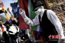 世界杯,全世界球迷大大的party。僅僅在臉上畫國旗已經(jīng)OUT了!玩的就是妖艷,玩的就是狂野,且看這次賽場外球迷們離奇的創(chuàng)意,體驗一下他們肆意揮灑的激情。中新社記者 廖攀 攝