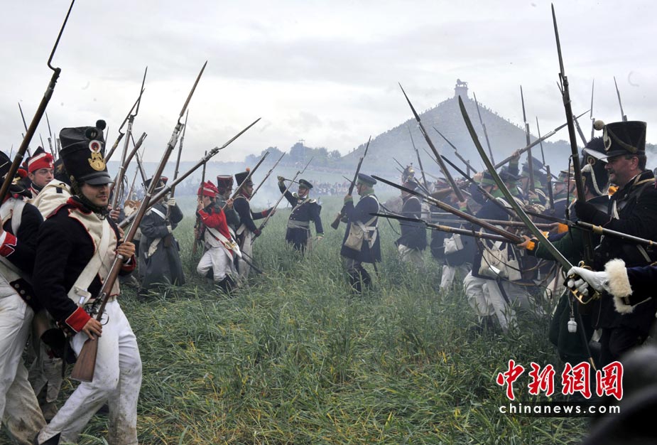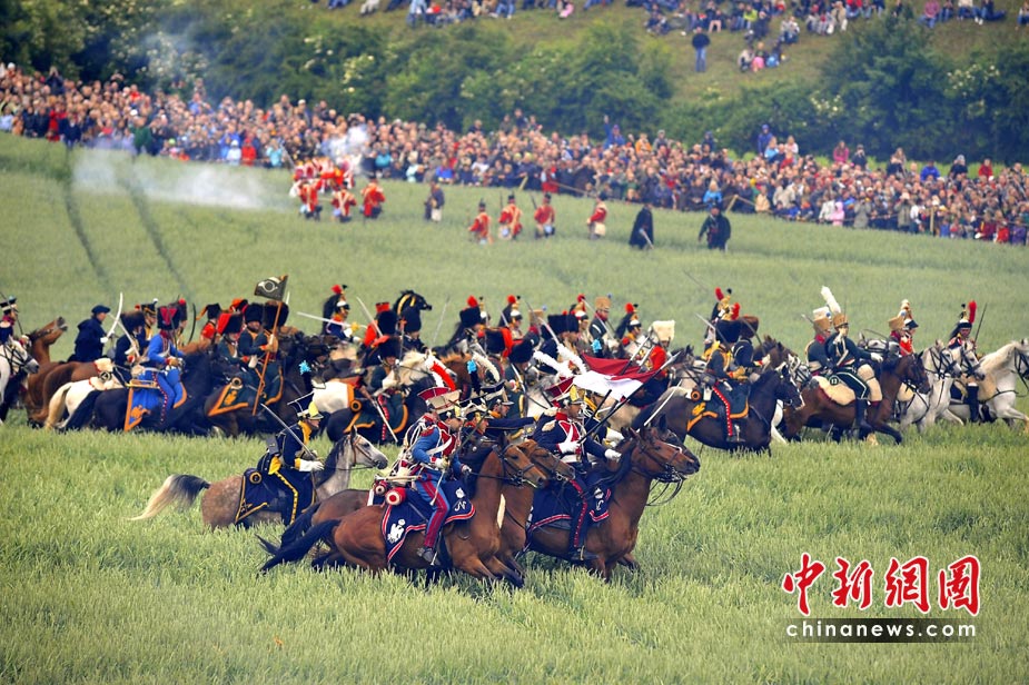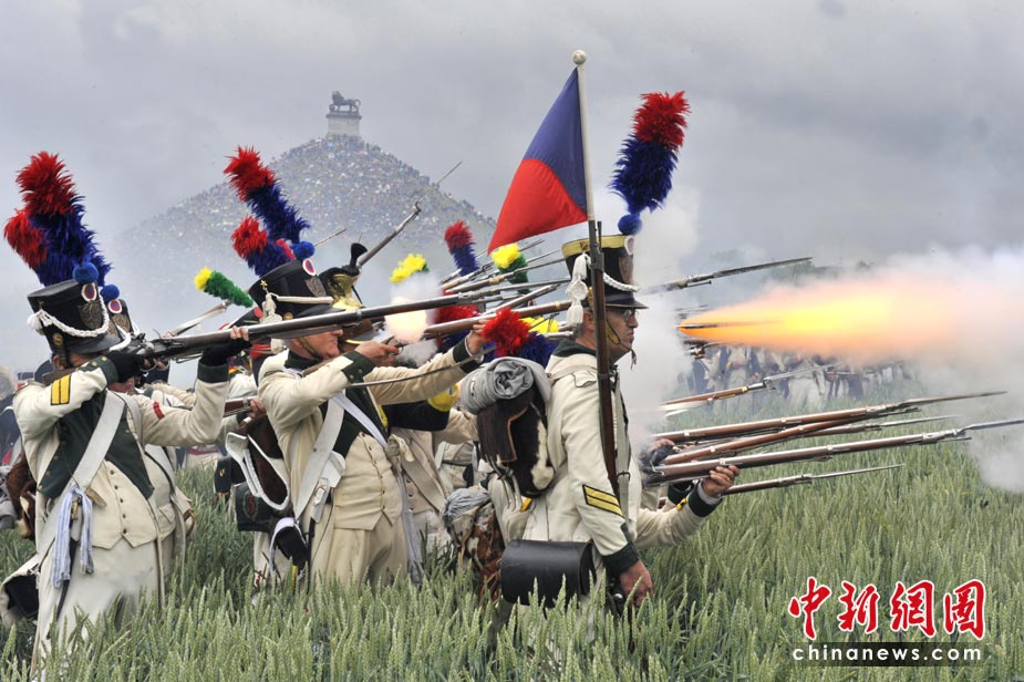 6月20日,在比利時首都布魯塞爾以南20公里的滑鐵盧,大約3000名來自多個國家的歷史愛好者身著古軍裝,在滑鐵盧安營扎寨,重現(xiàn)著名的滑鐵盧戰(zhàn)役。以此紀念滑鐵盧戰(zhàn)役195周年。