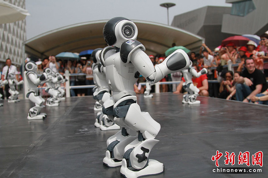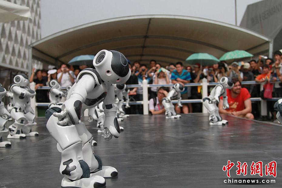 6月21日,上海世博會法國館展示的機器人首次在展館外入口處表演“舞蹈”。當天是世博法國國家館日,館方還舉行系列了慶典活動。中新社記者 殷春永 攝