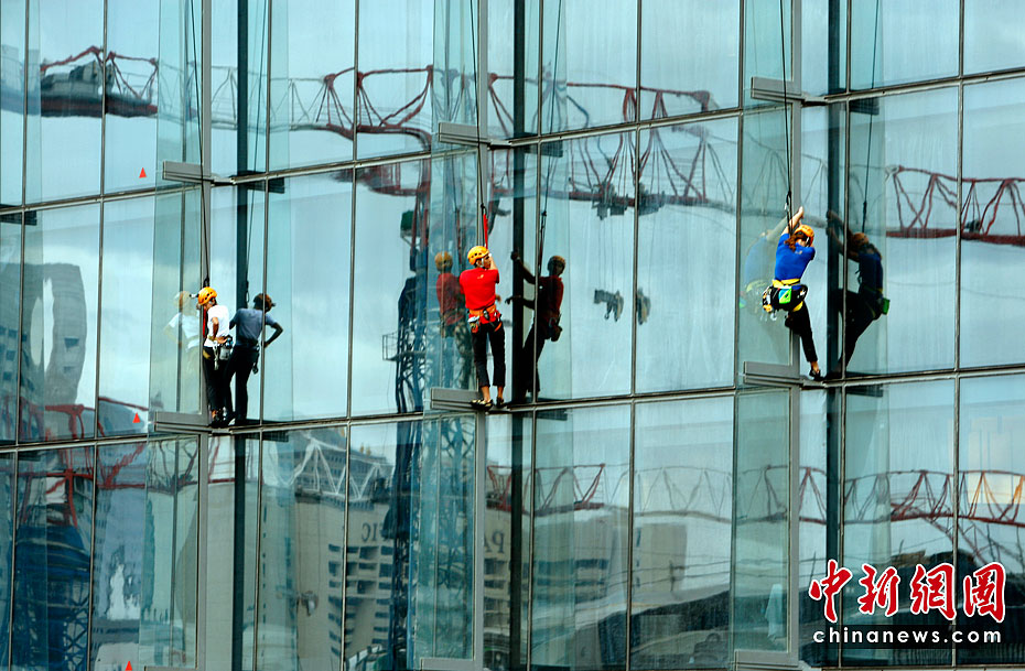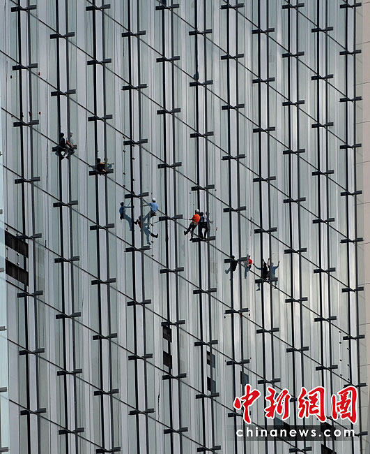 當(dāng)?shù)貢r(shí)間6月23日,21名專業(yè)登山者參加了在新加坡舉行的首屆世界攀登高塔錦標(biāo)賽。21位專業(yè)登山者同時(shí)攀爬3座55層樓高的濱海灣金沙酒店,最先爬到樓頂者為勝。