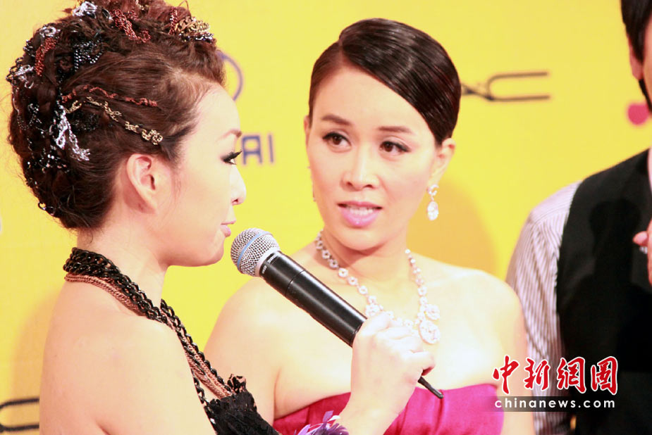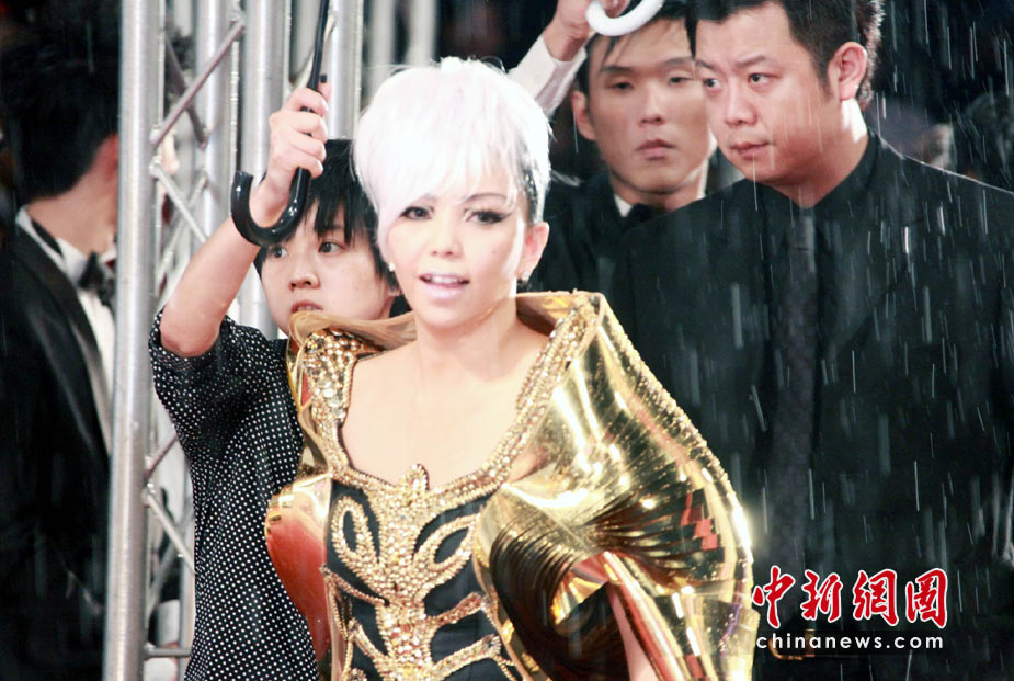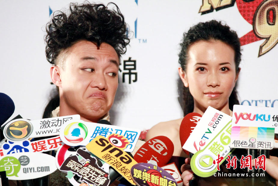 6月26日,臺(tái)灣第21屆金曲獎(jiǎng)流行音樂(lè)類頒獎(jiǎng)典禮星光大道在臺(tái)北小巨蛋舉行。圖為陳奕迅、莫文蔚聯(lián)袂出席,陳奕迅可愛扮鬼臉。中新社記者 黃少華攝