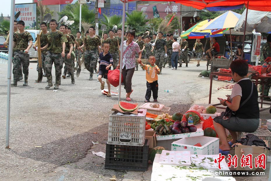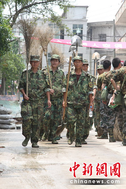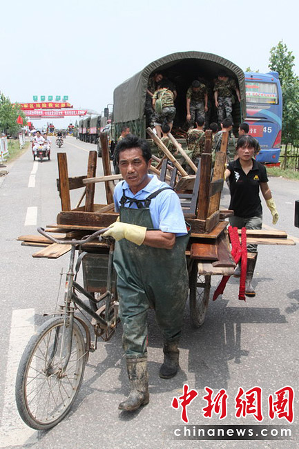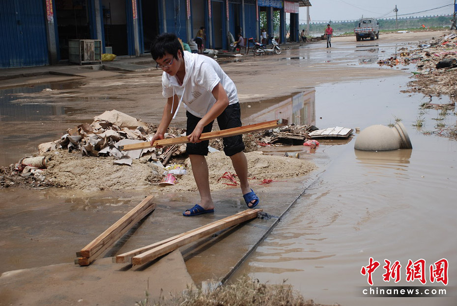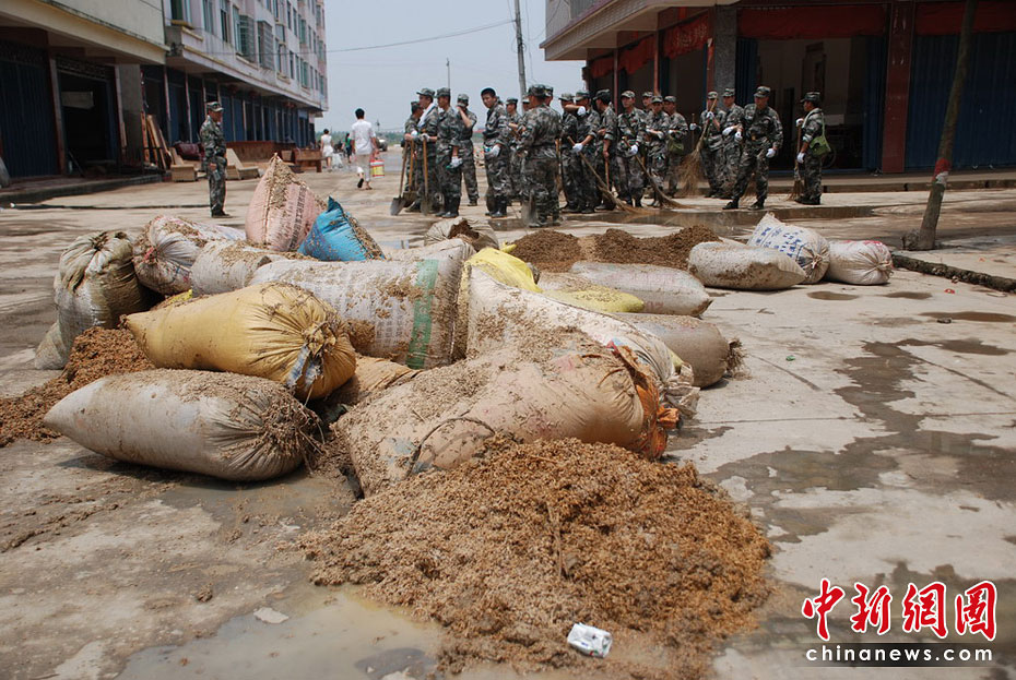 6月27日,隨著洪水逐漸退去,江西撫州災(zāi)區(qū)部分群眾返回家園,收拾被洪災(zāi)毀損的家,身穿迷彩服的救援人員隨處可見,幫助大家清理洪水留下的大批淤泥、垃圾。何柳斌 攝