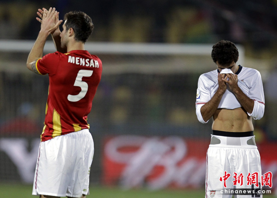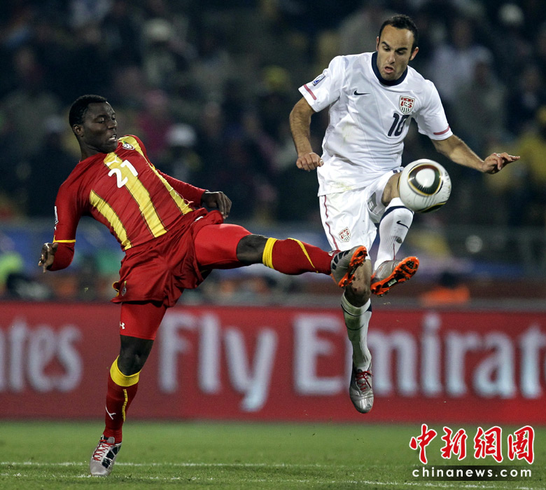 北京時間6月27日凌晨2:30,南非世界杯1/8決賽第二場美國與加納的比賽,在勒斯滕堡的皇家巴?锨驁隼_戰(zhàn)幕。憑借普林斯·博阿滕和多諾萬在上下半場的進(jìn)球,雙方在90分鐘之內(nèi)戰(zhàn)成1-1平。而加時賽中,中鋒吉安突破射門建功,幫助加納隊昂首晉級八強(qiáng)。