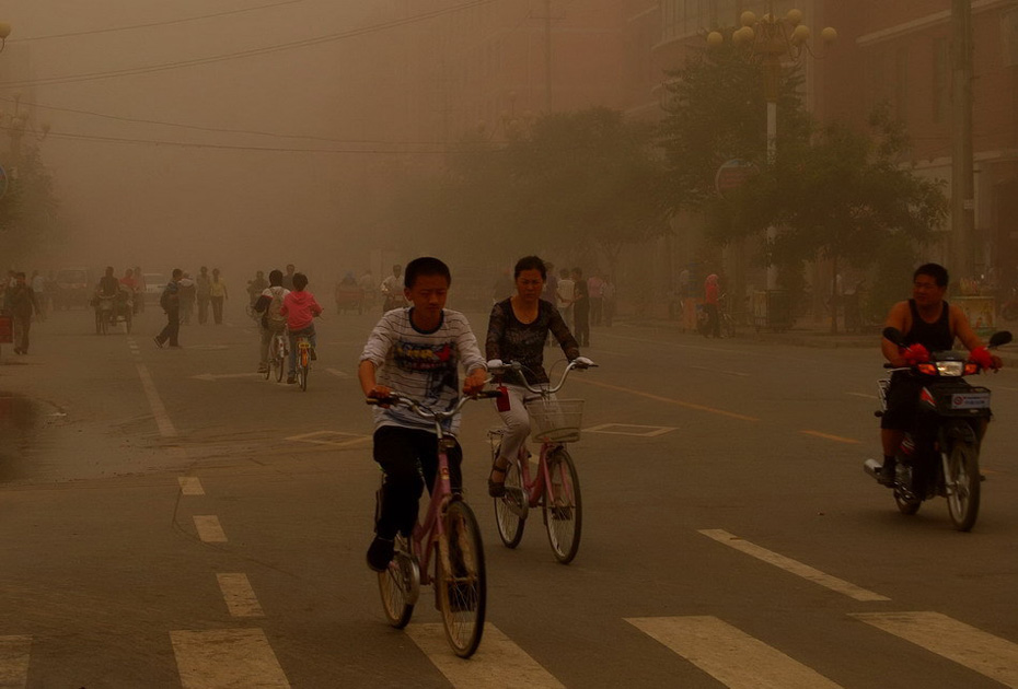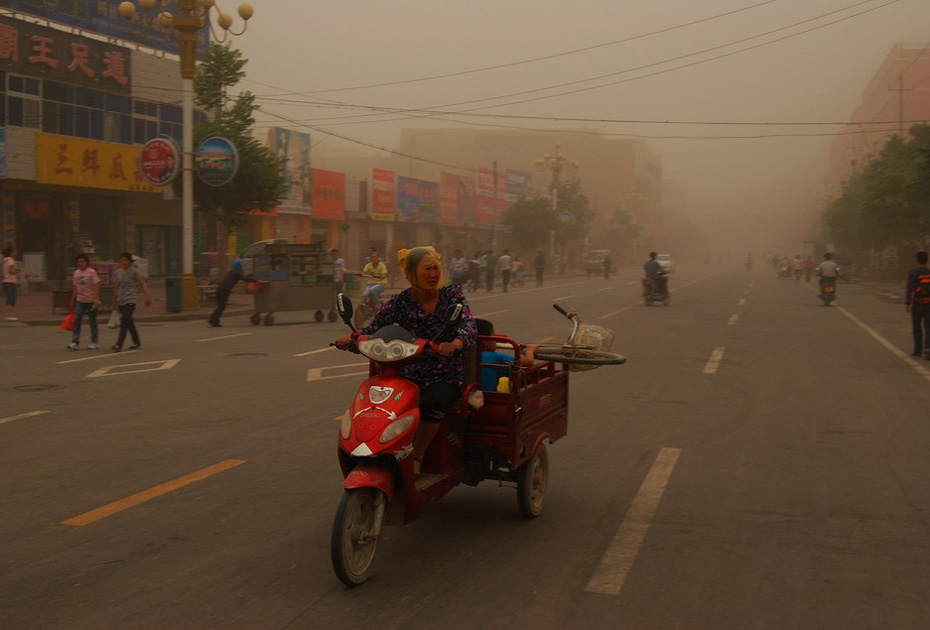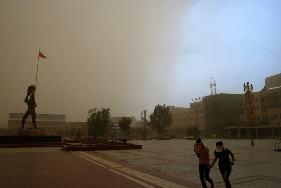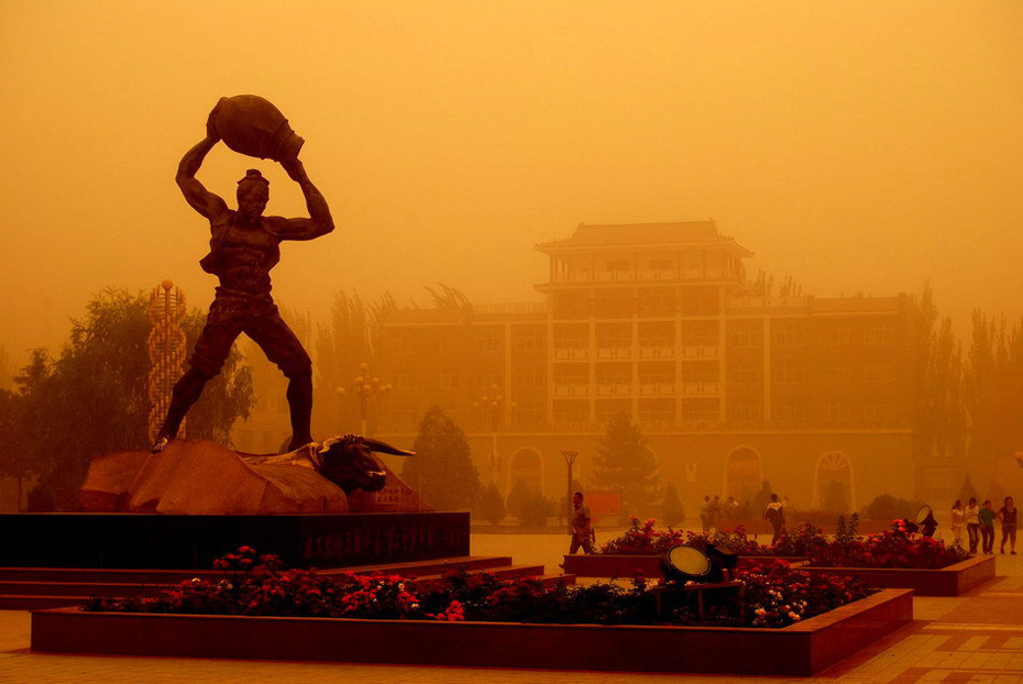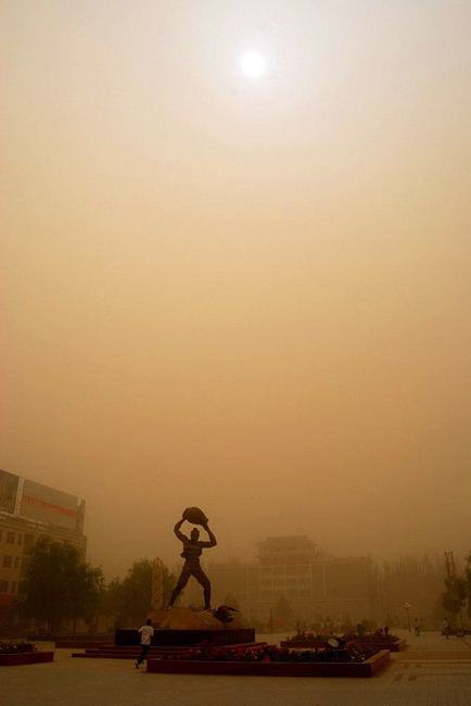 6月27日,甘肅民勤城區(qū)遭到沙塵襲擊。當日下午4時左右,甘肅省武威市民勤縣又遭沙塵暴襲擊,黃黑的沙塵迅速籠罩整個縣城,能見度大幅降低。今年4月24日甘肅民勤曾遭特大沙塵暴襲擊。 圖片來源:新華網(wǎng) 李軍 攝