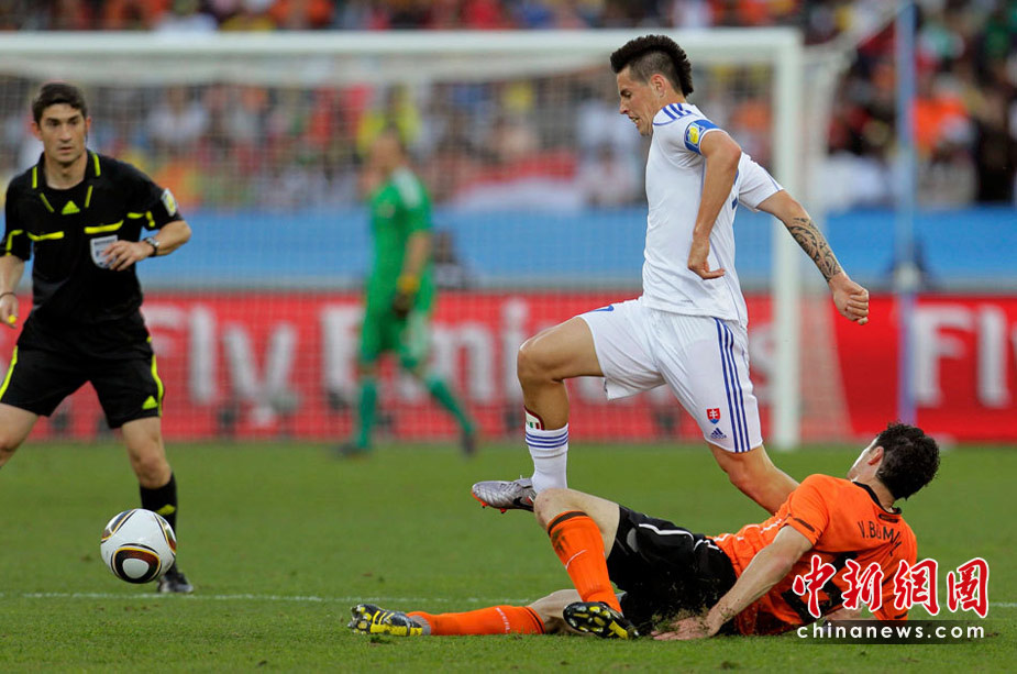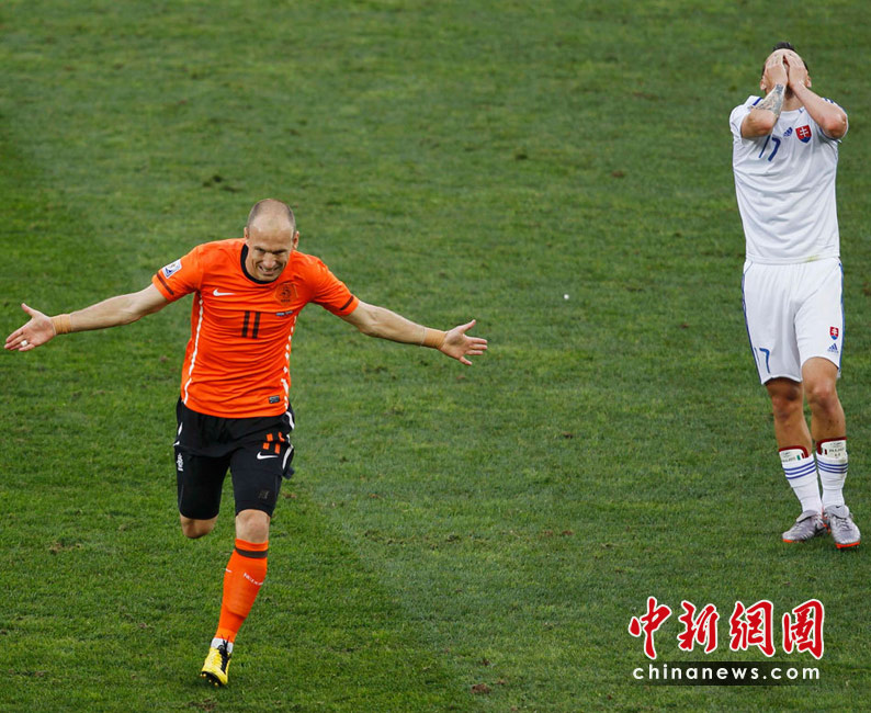 28日晚,南非世界杯1/8決賽第五場比賽在德班球場拉開戰(zhàn)幕,由E組頭名荷蘭隊迎戰(zhàn)F2第二名斯洛伐克。最終,憑借羅本和斯內(nèi)德在上下半場的進(jìn)球,荷蘭隊以2-1淘汰斯洛伐克,闖入八強。