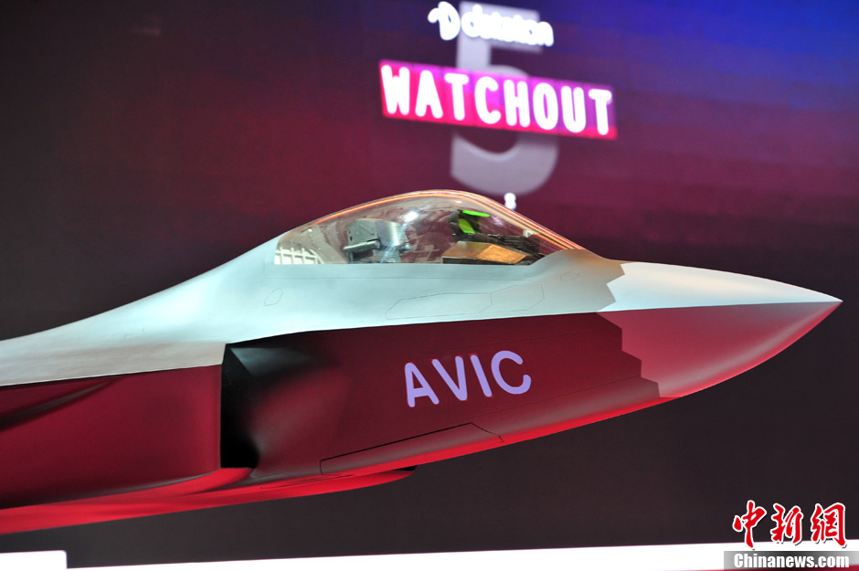 11月13日上午,第九屆中國(guó)國(guó)際航空航天博覽會(huì)在廣東珠海開幕,一架中國(guó)先進(jìn)戰(zhàn)斗機(jī)概念模型在中航工業(yè)展臺(tái)亮相,備受關(guān)注。中新社發(fā) 陳文 攝