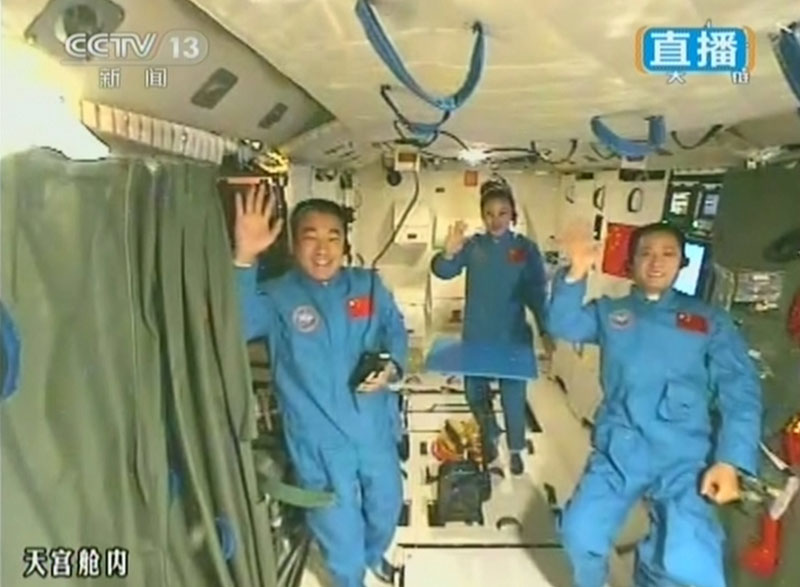 6月20日上午10時許,神舟十號航天員進(jìn)行中國首次太空授課,女航天員王亞平擔(dān)任主講,成為中國首位“太空教師”。(視頻截圖)