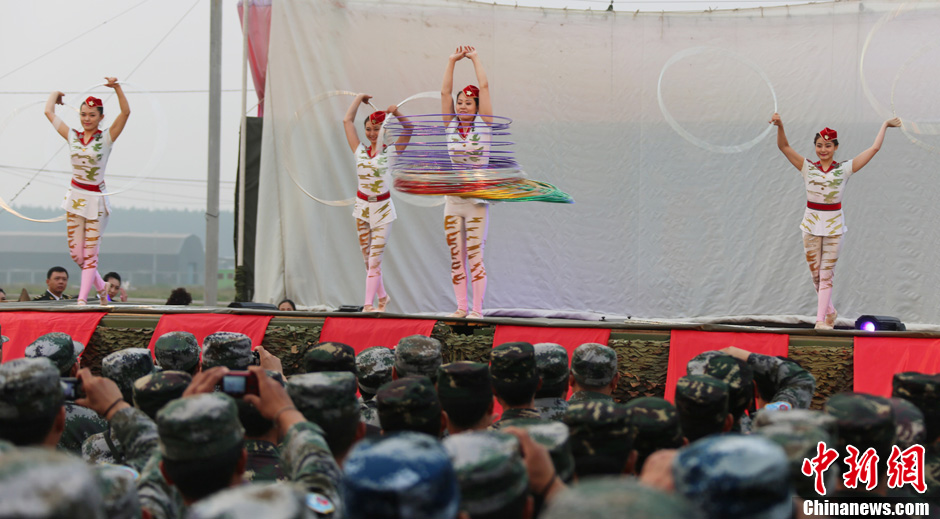 8月10日,隨同中方參演部隊(duì)赴俄羅斯參加“和平使命-2013”中俄聯(lián)演的沈陽軍區(qū)政治部文工團(tuán)演員們,為中俄千余名參演官兵獻(xiàn)上了一場(chǎng)精彩的文藝晚會(huì)。豐富多彩的文藝節(jié)目,將位于切巴爾庫爾訓(xùn)練場(chǎng)的中俄聯(lián)演野營(yíng)村,變成了友誼的盛會(huì)、歡樂的海洋。圖為魔術(shù)《流光溢彩》。中新社發(fā) 李祥輝 攝