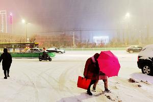 11月21日凌晨,“五岳之尊”山東泰山迎來今冬第一場雪,一片銀裝素裹,美若仙境。相比往年,泰山今年的初雪來得稍晚一些,吸引了不少游客登山賞雪。圖為游客邊登泰山,邊賞雪景。 鄒磊 攝