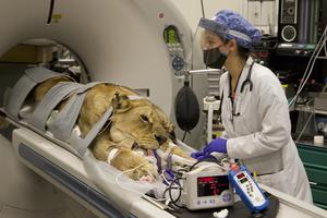 獅子進(jìn)醫(yī)院做CT掃描