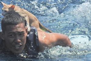 泰國(guó)海軍拯救被困貓咪