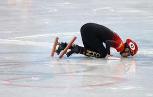 工作人員清理自由式滑雪女子坡面障礙技巧賽道