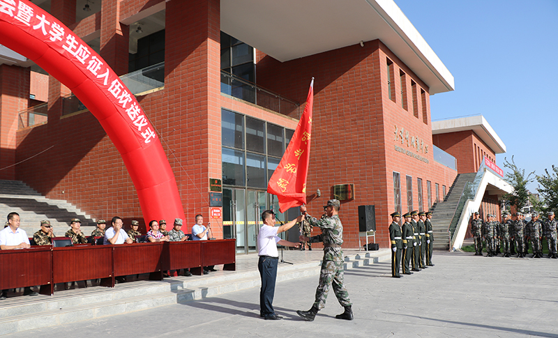翟存祥代表學院向軍訓教官表示衷心的感謝,祝愿應(yīng)征入伍的同學們在部隊進一步譜寫人生華章,并向參加軍訓的全體同學致以親切的問候。他指出,舉行大學生應(yīng)征入伍歡送儀式,就是要鼓勵大學生樹立“天下興亡,匹夫有責”的國防教育觀念,軍訓旨在培養(yǎng)同學們的國防意識和愛國主義精神,培養(yǎng)同學們的組織紀律觀念,磨練同學們意志品德,培育和踐行社會主義核心價值觀!他要求參訓學生要堅守目標,做遵紀守法的優(yōu)秀戰(zhàn)士;要刻苦訓練,做軍事訓練的優(yōu)秀學子;要勵志成才,做中國特色社會主義合格建設(shè)者和可靠接班人。他希望同學們牢記習近平總書記的殷殷囑托、諄諄教誨,不忘初心、牢記使命,勇于擔當這個時代賦予的歷史責任,樹立遠大理想,堅持勵志勤學,在激情奮斗中綻放青春光芒,立志成為中國特色社會主義偉大事業(yè)的有用人才。