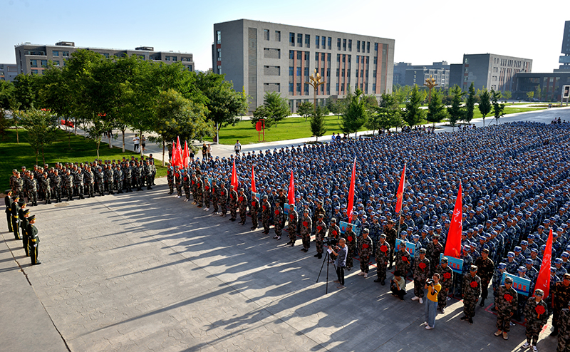 9月4日上午,學院2019級新生軍訓動員大會暨大學生應(yīng)征入伍歡送儀式在大學生活動中心廣場舉行。學院黨委書記、院長趙明出席并向軍訓團授旗,黨委副書記翟存祥寄語全體新生,院領(lǐng)導(dǎo)張富國、王永緒、田迎春、何毅、張開禮及31666部隊營長李明出席,承訓單位55名教官,學院各系黨總支書記、輔導(dǎo)員、新生班班主任,2019年參軍入伍的28名大學生、2019級4157名學生參加了大會。大會由副院長王守云主持。