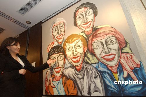 圖為曾梵志的群體肖像畫《面具-五張臉》,估價(jià)500萬港元,畫家以獨(dú)特的手法創(chuàng)造出角色及整體的舞臺效果。