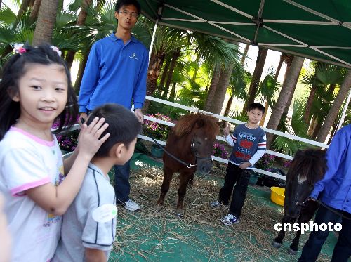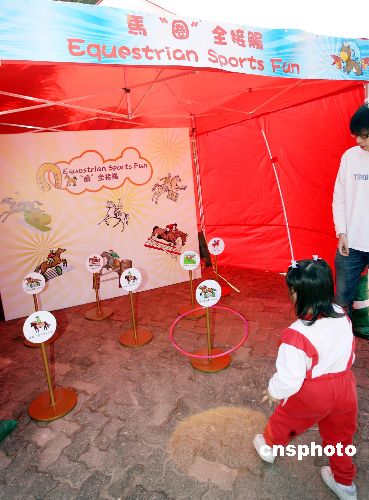 11月4號,香港《馬術展館》在彭福公園開幕,展館外設置與雪特蘭小馬合影、賽馬項目套圈等趣味性的活動,吸引眾多市民參與。08奧運馬術賽的腳步越來越近,香港賽馬會正積極開展多項活動為奧運熱身。中新社發(fā) 王麗南 攝