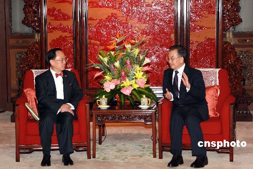 十一月二十三日,國(guó)務(wù)院總理溫家寶在北京會(huì)見(jiàn)來(lái)京述職的香港特別行政區(qū)行政長(zhǎng)官曾蔭權(quán)。中新社發(fā) 廖文靜 攝