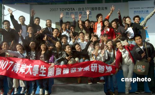 兩岸大學(xué)生二十五日共同攀登臺北一0一高樓,達(dá)成目標(biāo)后他們在一起歡呼慶賀。一年一度的“臺北一0一國際登高賽”今年首度設(shè)立兩岸青年菁英組,應(yīng)邀前來臺北研習(xí)、交流的中國人民大學(xué)、中國傳媒大學(xué)等學(xué)校學(xué)生與臺灣的同學(xué)約一百八十余人共同攀登這座世界知名的摩天大樓。中新社發(fā) 劉舒凌 攝