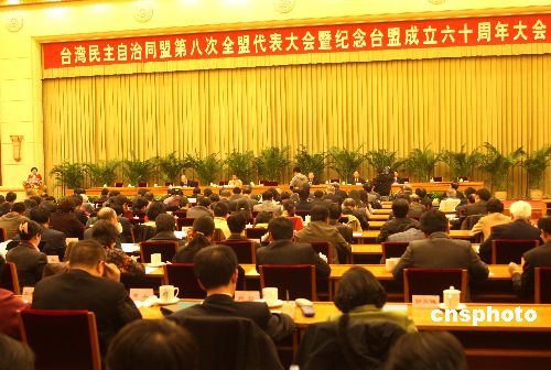 11月28日,臺(tái)灣民主自治同盟第八次全盟代表大會(huì)暨紀(jì)念臺(tái)盟成立六十周年大會(huì)在北京召開。中新社發(fā) 趙振清 攝