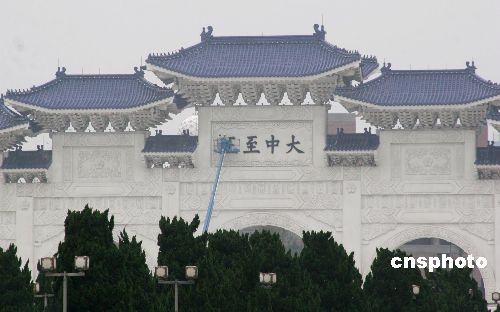 十二月七日上午,臺(tái)北中正紀(jì)念堂前牌坊上的“大中至正”牌匾被拆除,將換成“自由廣場(chǎng)”四字,同時(shí)“中正紀(jì)念堂”也將改為“臺(tái)灣民主紀(jì)念館”。中新社發(fā) 陳國(guó)華 攝