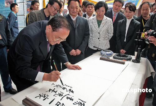 十二月十一日,在泉州參加“二00七泉臺產業(yè)合作投資洽談會”的國民黨副主席關中先生,來到中國閩臺緣博物館,親筆寫下“閩臺一家親 淵源流長”的題詞,為兩岸未來送上美好祝福。當日,“二00七泉臺產業(yè)合作投資洽談會”在泉州開幕。中新社發(fā) 傅丹丹 攝