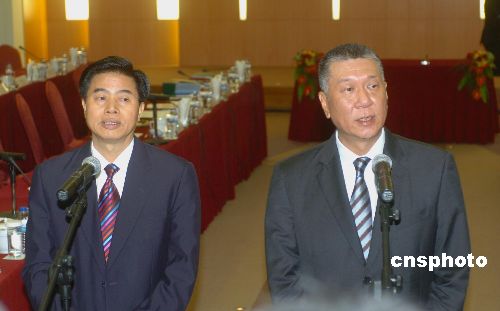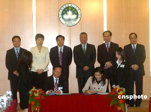 十二月十三日,澳門特別行政區(qū)政府與廣東省人民政府在澳門政府總部分別簽署了《粵澳供水合作框架協(xié)議》、《粵澳緊急醫(yī)療和消防救援合作機(jī)制協(xié)定》、《粵澳食品安全工作交流與合作框架協(xié)議》和《粵澳中醫(yī)藥產(chǎn)業(yè)合作框架協(xié)議》四項(xiàng)合作項(xiàng)目協(xié)議書。澳門特首何厚鏵、廣東省省長(zhǎng)黃華華等嘉賓見證簽字儀式。中新社發(fā) 史利 攝