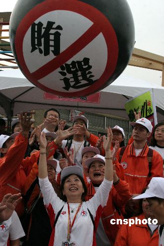 十二月十五日,臺北士林地檢署在天母運(yùn)動公園舉辦“萬人反賄選”大型宣導(dǎo)活動,以人體骨牌挑戰(zhàn)吉尼斯世界紀(jì)錄。中新社發(fā) 董會峰 攝