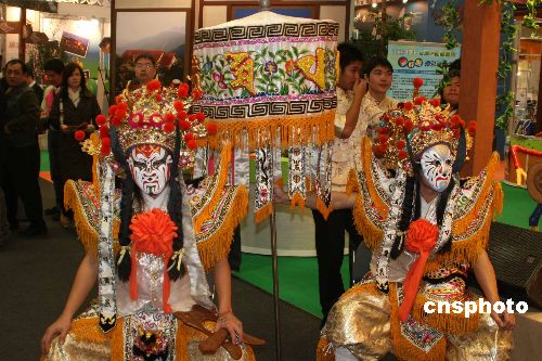十二月十七日傍晚,“臺(tái)北國(guó)際旅展”閉幕,四天共吸引十九萬(wàn)三千九百多人次入場(chǎng),創(chuàng)下二十一年來(lái)新高。圖為一個(gè)攤位請(qǐng)來(lái)“八家將”助陣。中新社發(fā) 董會(huì)峰 攝