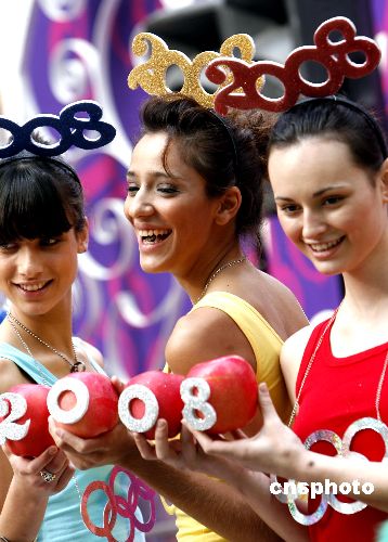 十二月二十日,數(shù)位蘋(píng)果倒數(shù)女郎佩戴奧運(yùn)五環(huán)眼睛在香港時(shí)代廣場(chǎng),為除夕夜(12月31日)該地將舉辦的“全港倒數(shù)2008迎奧運(yùn)”活動(dòng)做新聞發(fā)布。據(jù)介紹,今年會(huì)以“北京香港奧運(yùn)同心”為主題,聯(lián)同北京電視臺(tái)同步直播當(dāng)晚盛事,香港電臺(tái)將制作極盡視聽(tīng)效果的三個(gè)小時(shí)的節(jié)目,云集多達(dá)35個(gè)以上的演唱單位、金牌運(yùn)動(dòng)員等一起表演團(tuán)結(jié)、和平、友誼的奧運(yùn)精神。屆時(shí)將會(huì)有超過(guò)10萬(wàn)人聚集觀看該活動(dòng)。中新社發(fā) 王麗南 攝