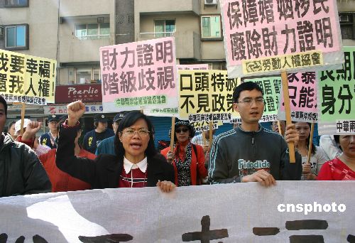 2007年是兩岸通婚二十周年,目前有超過二十五萬名大陸配偶在臺灣生活。但由于當(dāng)局的限制性政策,大陸配偶在島內(nèi)的權(quán)利難以得到保障。十二月二十一日,“中華兩岸婚姻協(xié)調(diào)促進會”在“移民署”門前集會,申要人權(quán)與平等待遇。中新社發(fā) 陳國華 攝