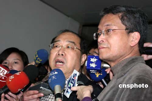 十二月二十六日,為配合臺(tái)灣當(dāng)局的一階段領(lǐng)投票規(guī)劃,“中央選舉委員會(huì)”在臺(tái)北舉行會(huì)議,以六比三通過(guò)修改各級(jí)選委會(huì)組織規(guī)程。圖為國(guó)民黨、親民黨推薦的“中選會(huì)”委員劉光華、趙叔鍵(右)接受記者采訪(fǎng),反對(duì)行政干預(yù),提岀一階段、兩階段折衷方案。中新社發(fā) 董會(huì)峰 攝