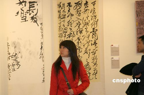 一月六日下午,由臺(tái)灣何創(chuàng)時(shí)書法藝術(shù)基金會(huì)等主辦的“傳統(tǒng)與實(shí)驗(yàn)書藝雙年展”在臺(tái)北開幕,臺(tái)灣資深書法家及書壇新秀六十九人共創(chuàng)作一百三十六件作品參展。本次書藝展以“流行文化與語(yǔ)言”為主題,參展作品分為“傳統(tǒng)”與“實(shí)驗(yàn)”兩類,既彰顯中國(guó)傳統(tǒng)書法藝術(shù),又頗富時(shí)代創(chuàng)意特色,很受年輕人關(guān)注。中新社發(fā) 孫自法 攝