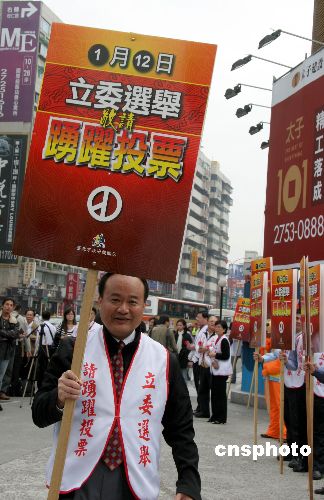 一月八日,臺北市政府民政局在臺北街頭組織宣導民眾踴躍投票活動,為即將到來的臺灣“立委”選舉造勢。中新社發(fā) 孫自法 攝