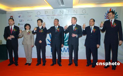 一月二十四日,澳門英國(guó)商會(huì)辦事處在中土大廈正式啟用,澳門特首何厚鏵等嘉賓親臨舉杯祝賀。澳門英國(guó)商會(huì)辦事處將擔(dān)任英澳兩地政府和商界之間的橋梁,為兩地造就商機(jī)、聯(lián)系及交流機(jī)會(huì)。中新社發(fā) 史利 攝