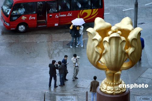 一月二十五日,由于香港受到寒冷冬季季候風(fēng)影響,天文臺(tái)發(fā)出寒冷天氣警告,在細(xì)雨綿綿和寒風(fēng)下金紫荊廣場(chǎng)游客明顯減少。中新社發(fā) 洪少葵 攝