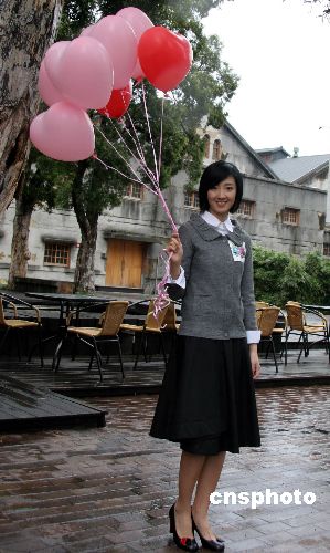 一月二十六日,臺(tái)灣年輕藝人桂綸鎂在臺(tái)北街頭拍攝廣告。微風(fēng)細(xì)雨、老樹桌椅、美女氣球,別具風(fēng)情。中新社發(fā) 孫自法 攝